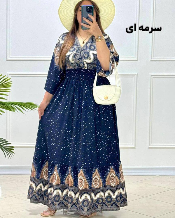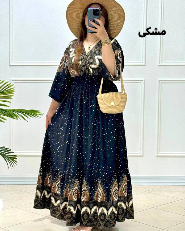 پیراهن ساحلی مدل طاووس دوخت مزونی فری سایز جنس آیرو فری سسایز