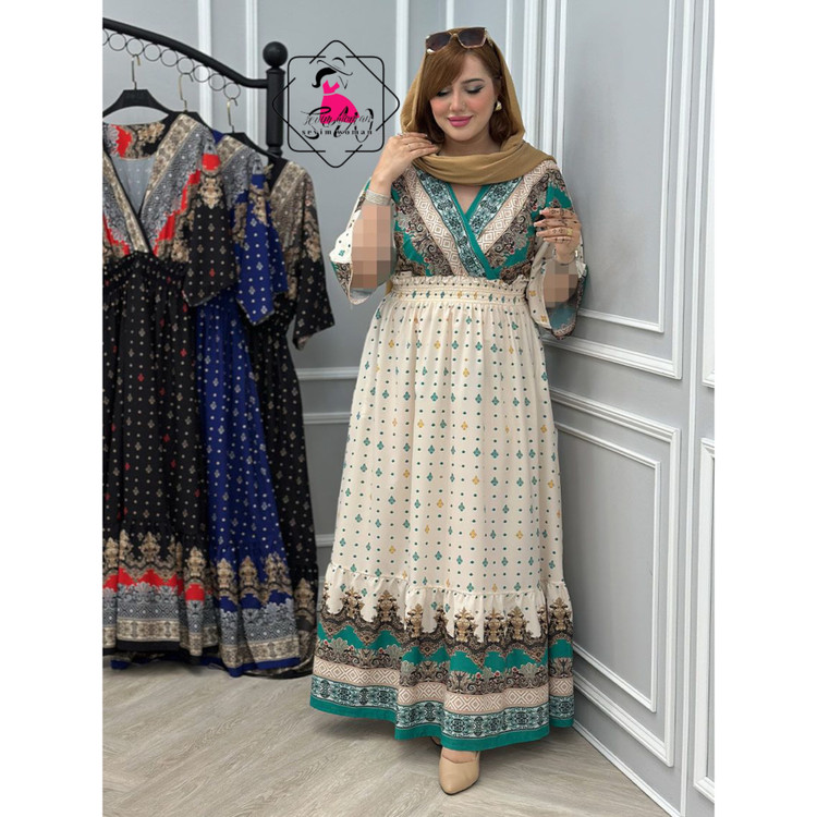 پیراهن ساحلی هندی جنس آیرو خنک مخصوص تابستان بدون چروک و آبرفت فری سایز